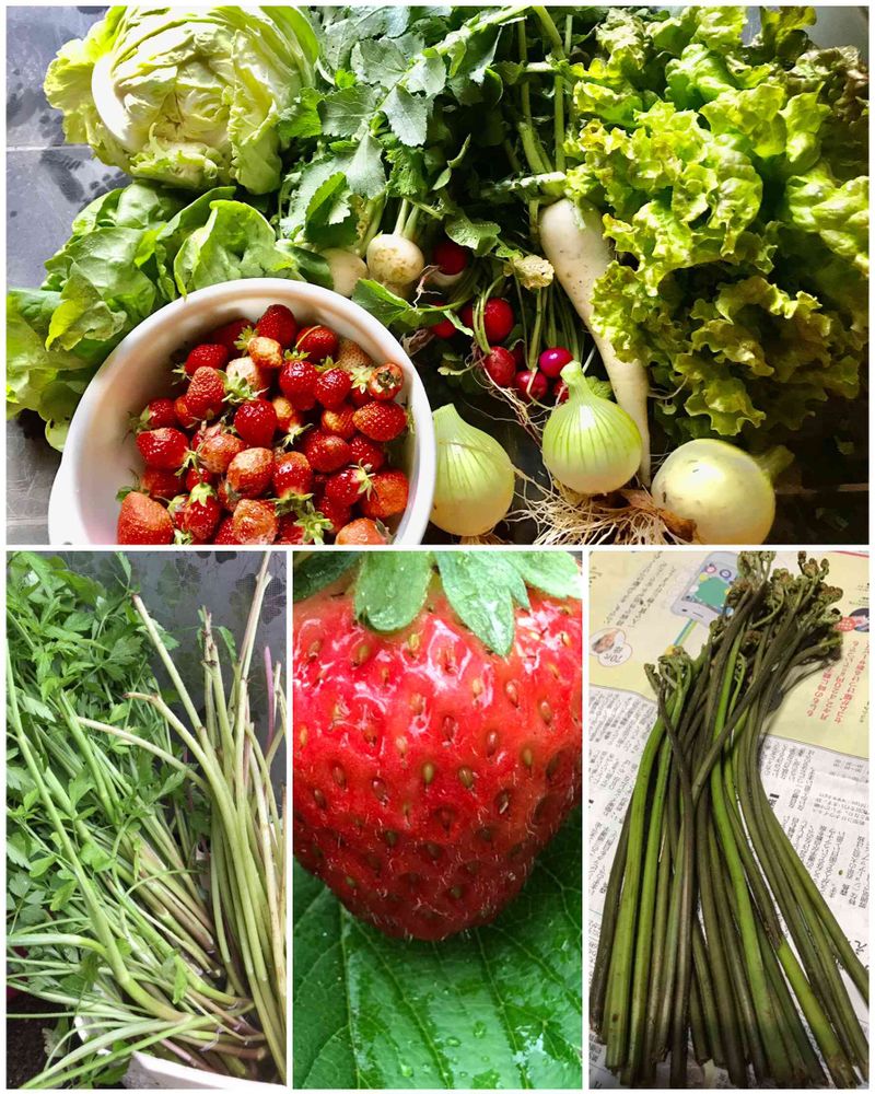 キャベツ サラダ菜 サニーレタス カブ 大根 ラデッシュ 新玉葱 そしていちご🍓沢山