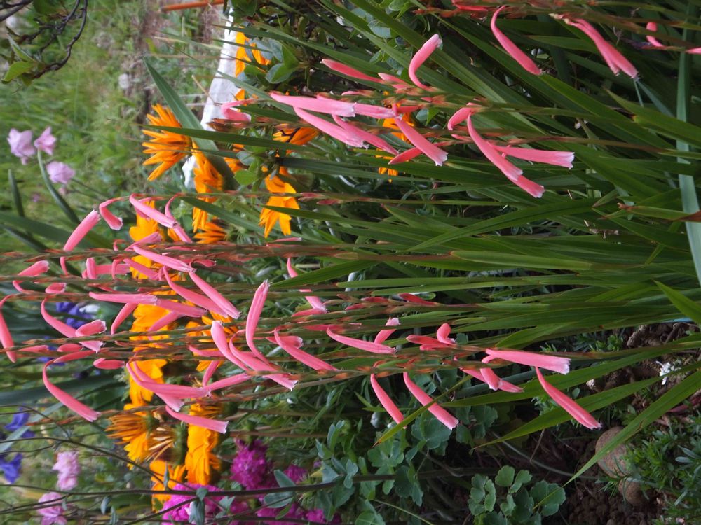 昨年も投稿した名前が解らない筒状のピンク色のお花。 ワトソニアの変種でしょうか? パチリ