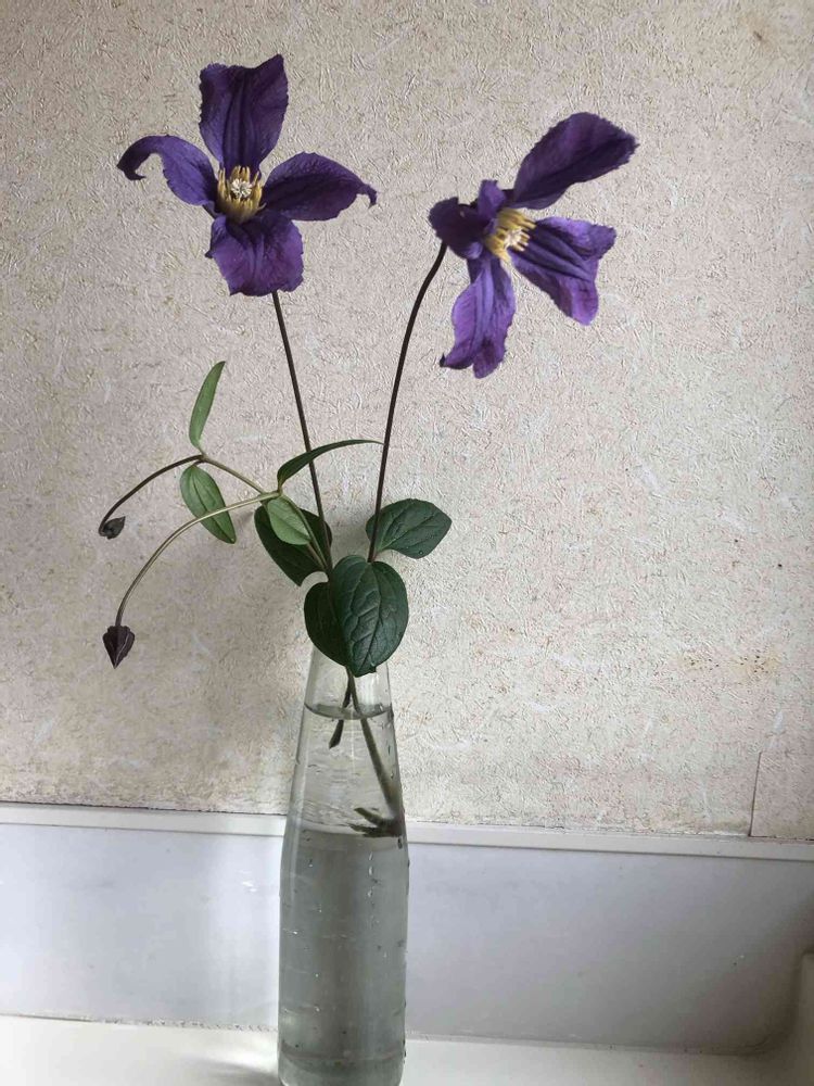 庭に咲いてる クレマチス エリオステモン 切って長い瓶に生けました かわいい💕
