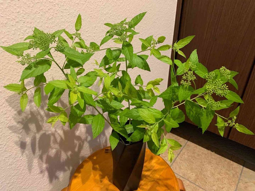 間もなく開花ですが、やや大きくなり過ぎてるので、少し間引いて切り花として玄関に飾ってみました♪😊