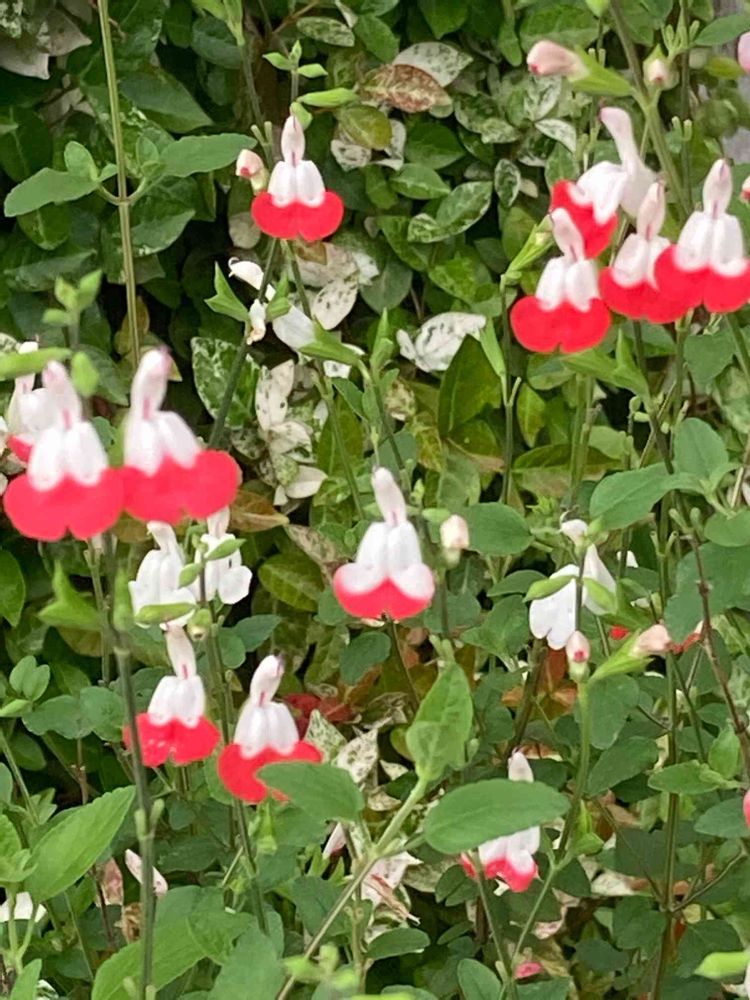 チェリーセージ(ホットリップス)とハツユキカズラ