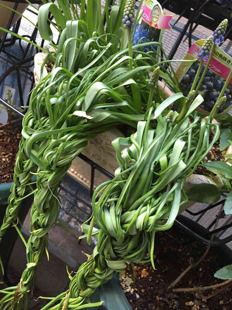 ムスカリの葉っぱがのびのびなので三つ編みにまとめました( *´艸`)