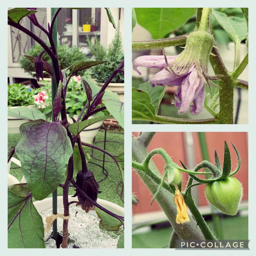 右上は白ナス。お花も薄い紫でトゲトゲしてます😳💦