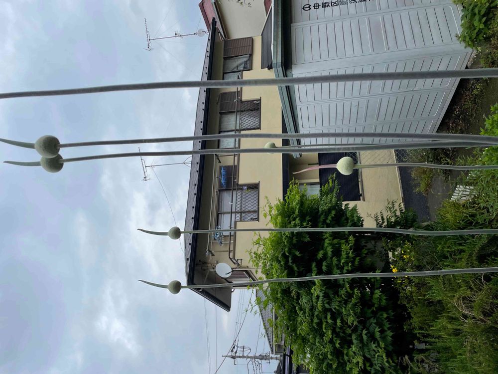 花じゃないんですよ、1m以上の長い茎の途中に玉ねぎみたいになってる見た事もない不思議な植物