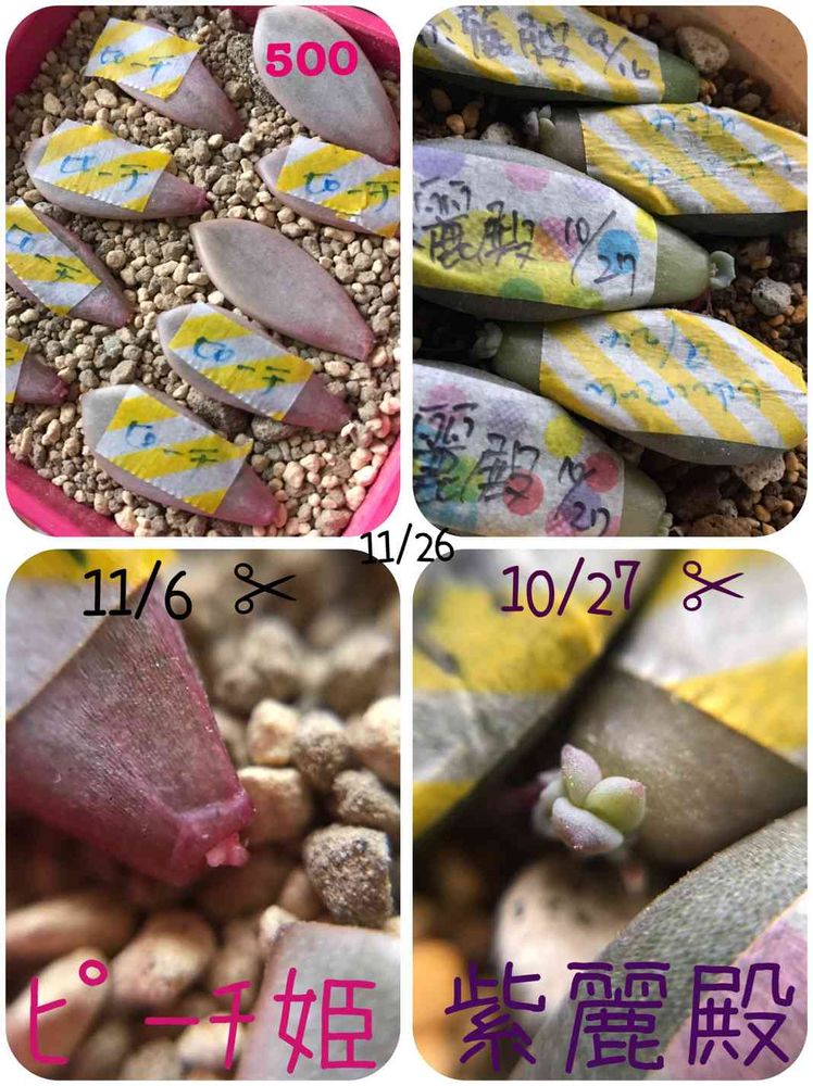 うちのピーチ姫の葉挿し段々と先祖返りしてる子多数💦