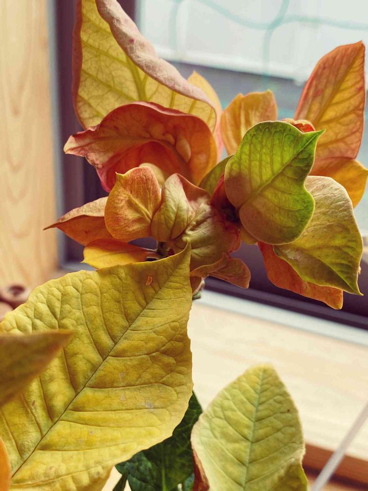 こちらのポインセチアゴールドも新しい葉っぱが続々❣️元気だよヽ(*´∀`*)ノ