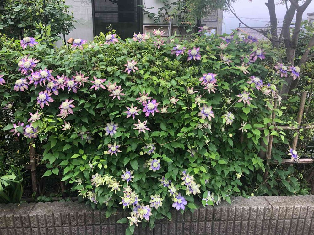 三年目の株です!隣にもクレマチスあるのですが、どちらもモリモリです🌸玄関前の庭なので、多く咲かせてます❤️