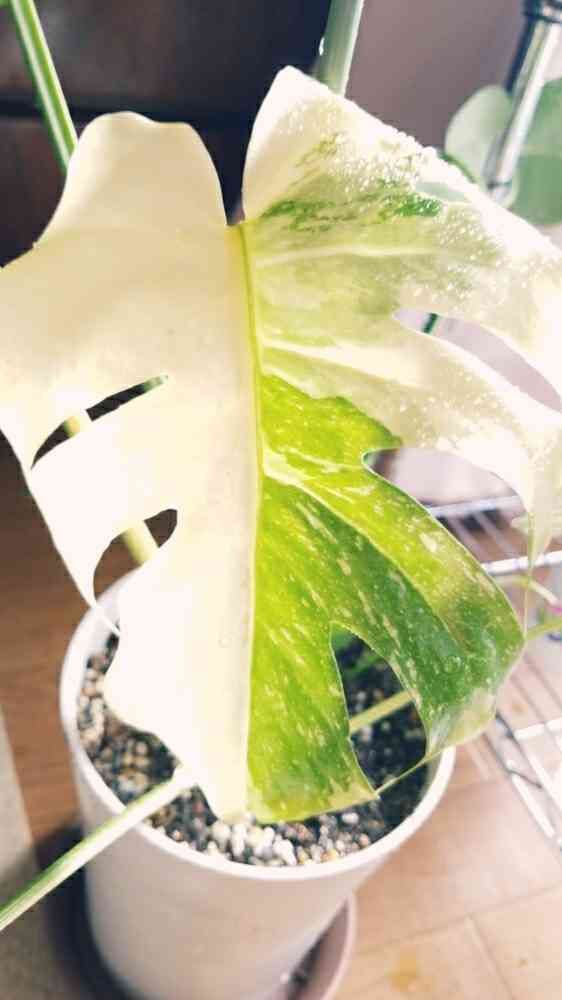 斑入りモンステラさん。モンステラらしい切れ込み入りました…で憧れてた半分白…気をつけないと焼けるんだろなぁw