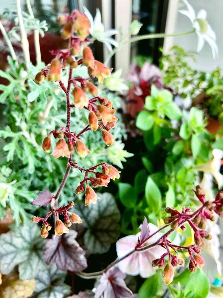 12日にUPして以降、どんどん花芽が伸びて鈴なりの花を咲かせてるヒューケラ・シナバーシルバー。