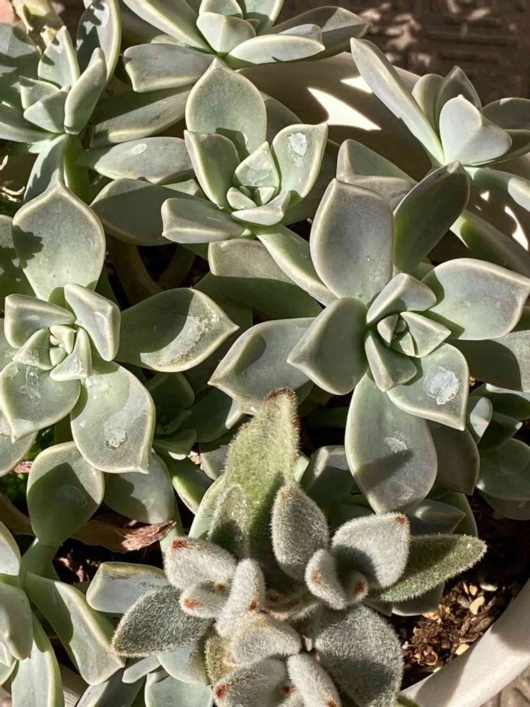 何もしなくてもいっぱい増えた多肉植物の朧月さん!!……(‥ )ン?1つ違うものが😅さて何でしょう??ってすぐ分かるか😆