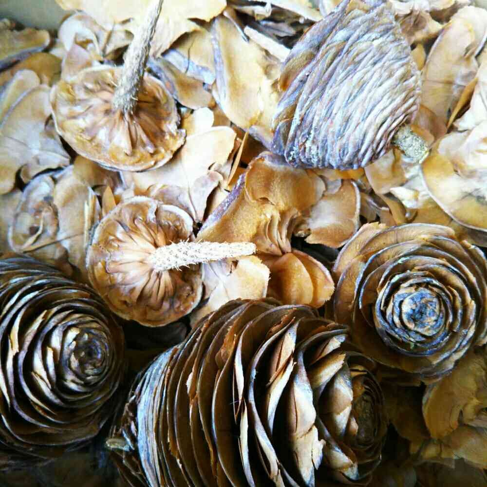 まだ、松ぼっくりのままのと、バラバラ取れて