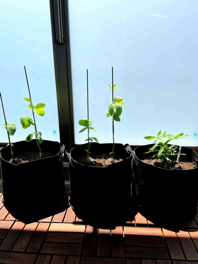 枝豆唐辛子を植え替えしました。サボテンとは違って深さのある大きな鉢が必要なんですね!