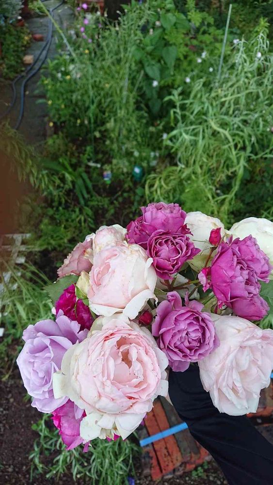 梅雨に入って傷んだバラをカット。ほぼバラシーズン終わりました。