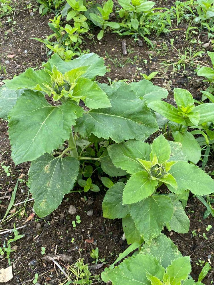 昨年に種まきして咲いたひまわり🌻の種をそのままにして置いたら、今年発芽しました☺️