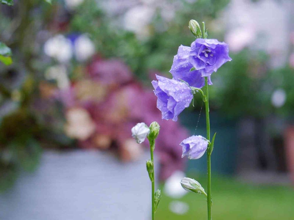 このカンパニュラの茎は細いけどしっかりしていて、スッと立って支えは要らないんですよ。