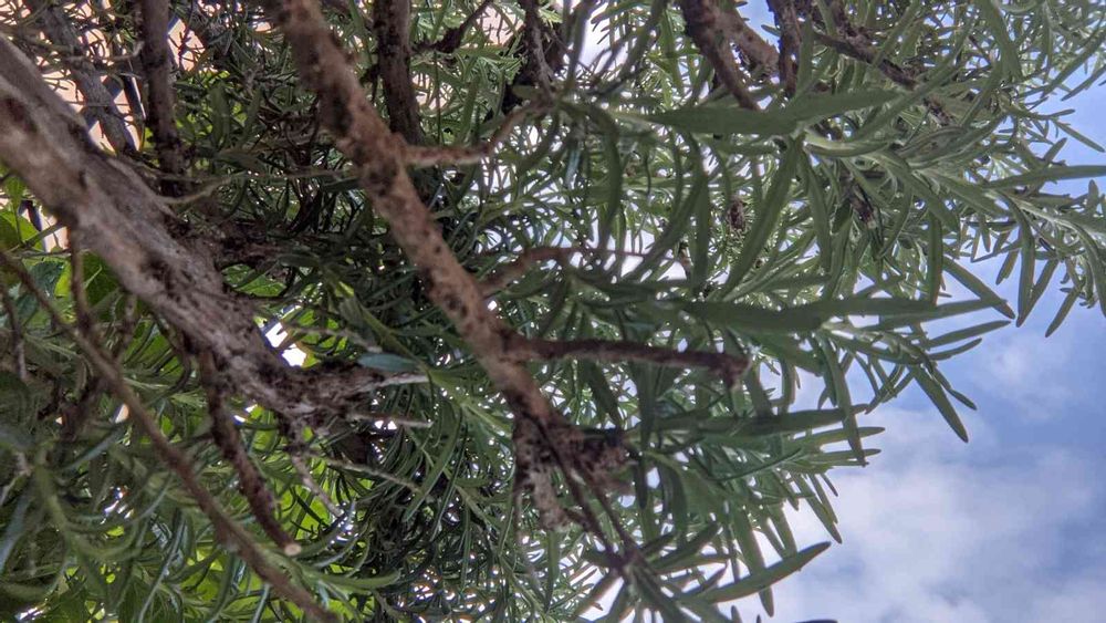 庭に植えていたローズマリーの木。大木に見えるかもですかまだ小さいです。買ってきた時はホームセンターの小さなポットでしたが10年ほど育てたら大きくなりました。私の腰の高さくらいに毎年剪定してます。
