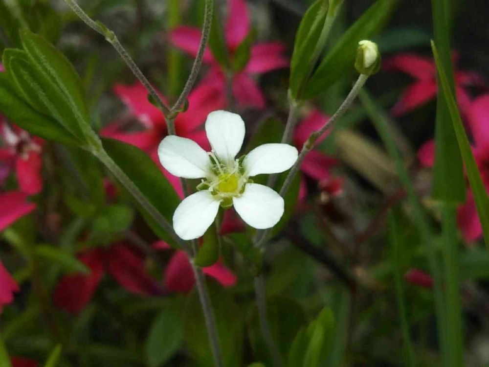 赤と緑の中に、愛らしい白いお花🌼