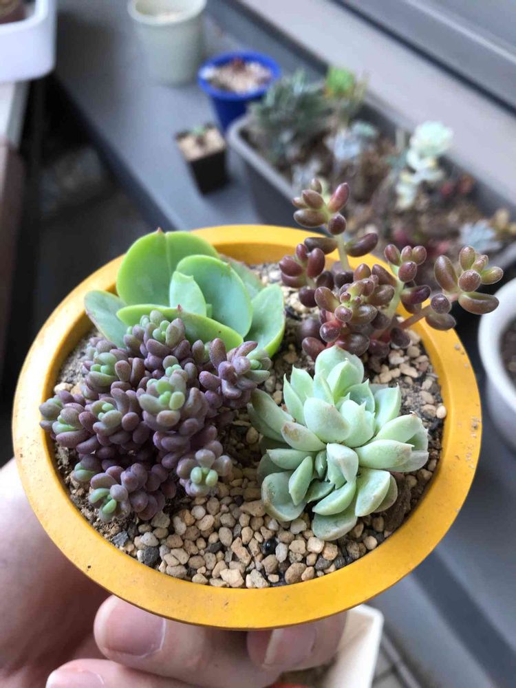 ホームセンターでミニ多肉を買って寄植え。パープルヘイズの色が気に入ってます。