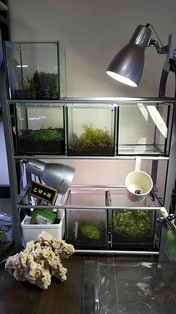 小さい水槽で養生している苔の棚です♪