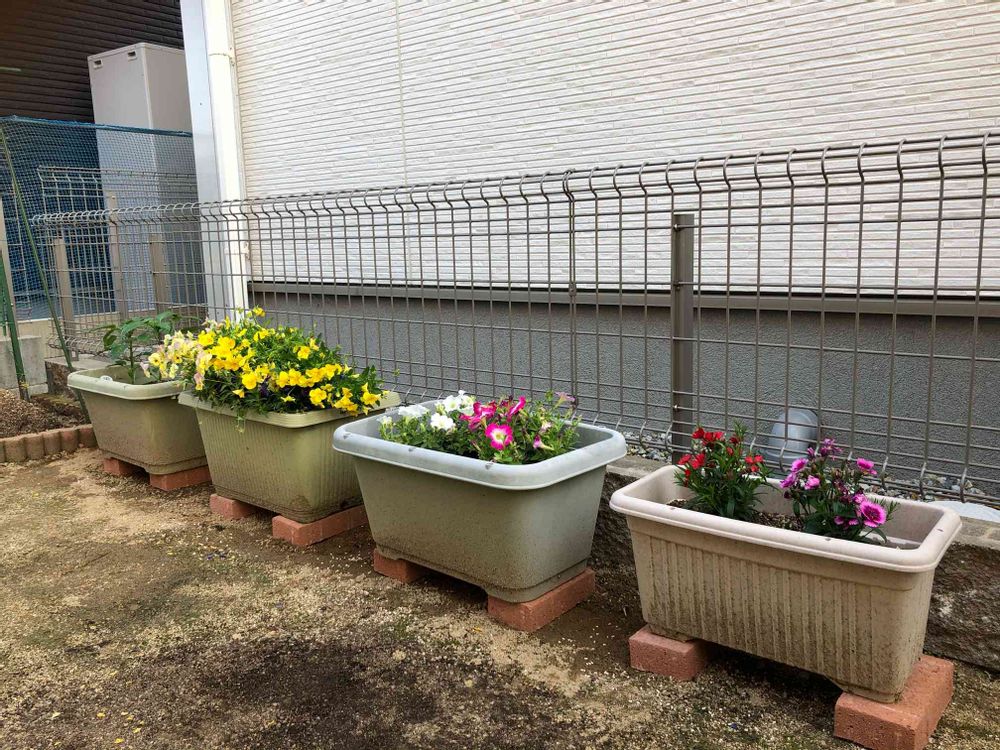 プランターを直置きしていたのがナメクジやヤスデを発生させる原因だと思うので、ブロックで対策。