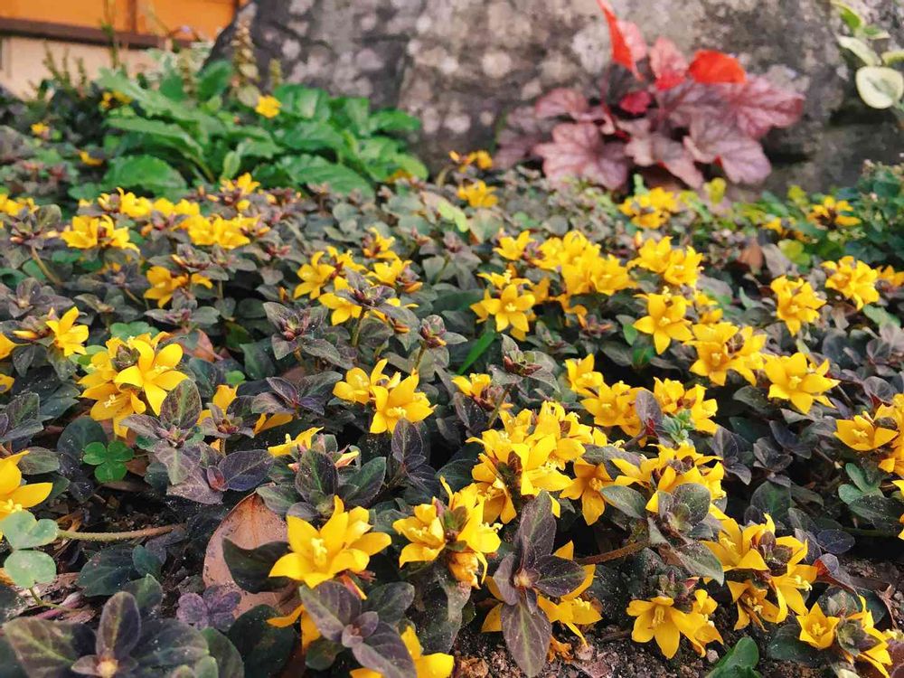 庭のリシマキアミッドナイトサンが初めて花をつけました=͟͟͞͞(๑º ロ º๑)✨カワイイ!!