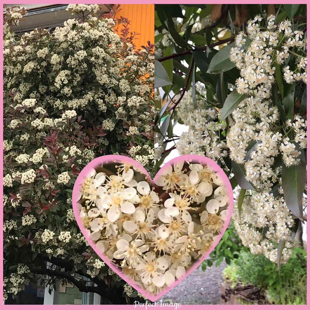 花散歩 ベニカナメモチのお花、美容院の花壇