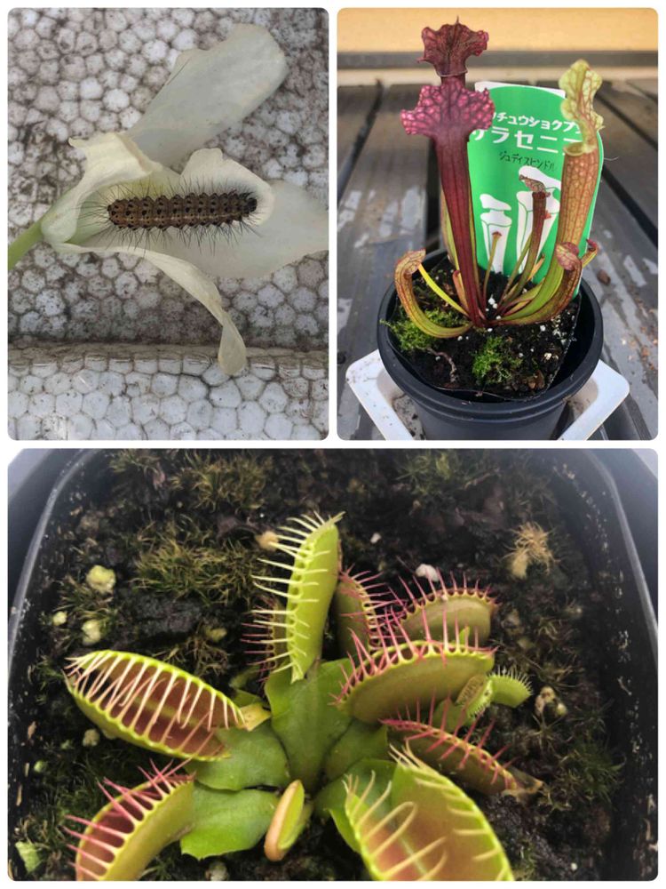 毛虫と食虫植物って事は、もしかしてこの後に食虫植物の栄養に回した?😁