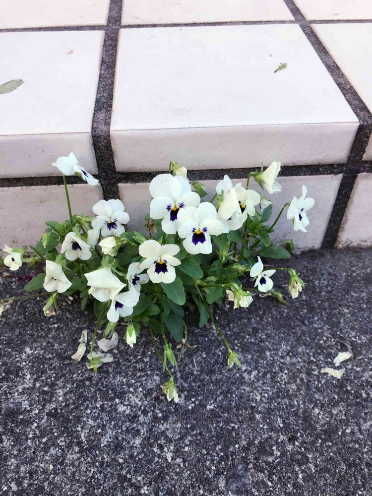 階段とコンクリートの隙間から勝手に生えてきたビオラ。
