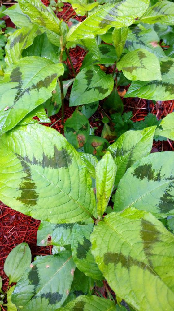 ミズヒキの葉っぱ、こんな模様入っていた❓