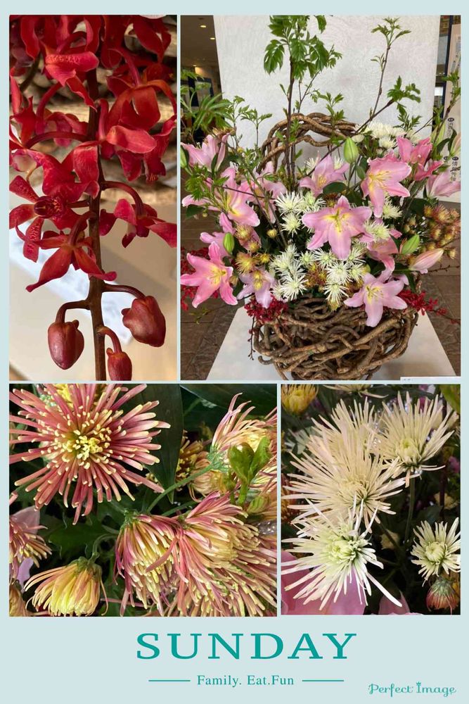 仕事で市役所に行った時に飾られていました😊菊の華やかさと赤い蘭が綺麗でした💕