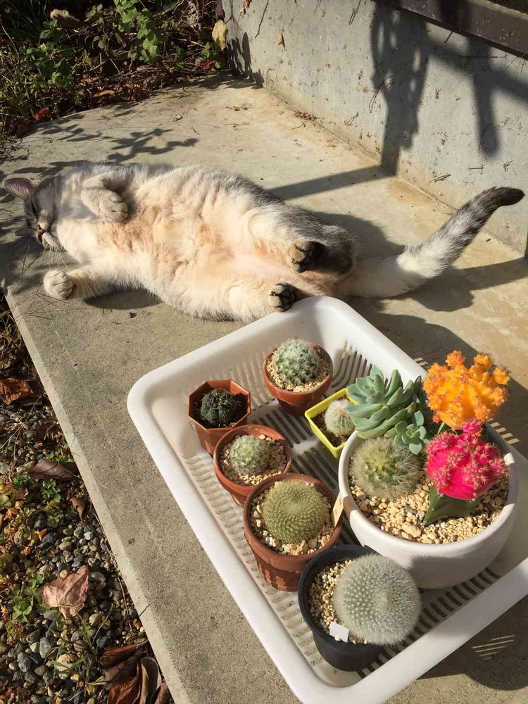 🐱も🌵も丸々、もふもふはたまらんです😍