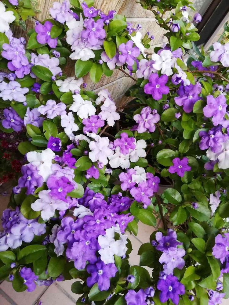 📝ニオイバンマツリは車庫で冬越しし、1ヶ月程前まで昨年の旧葉🌿をつけてましたが新葉🌿花までは早かったようにも😅💜🌱思います。