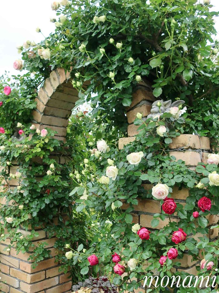 煉瓦のアーチに薔薇( ∩ˇωˇ∩)