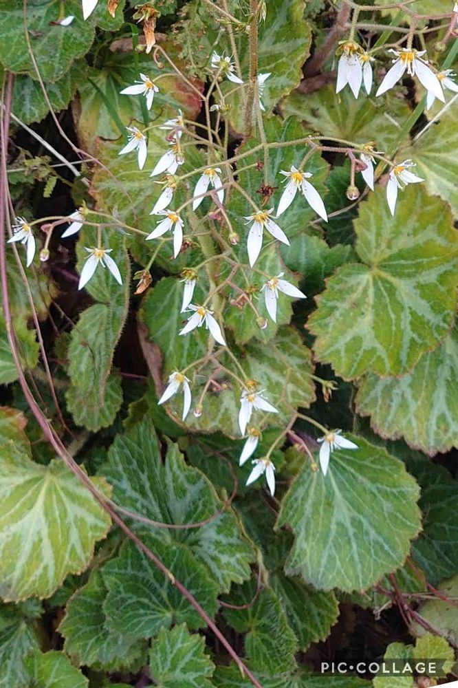 マンションにも咲いていますが花と写るのが、他の葉で、ユキノシタの葉が隠れているのです😅