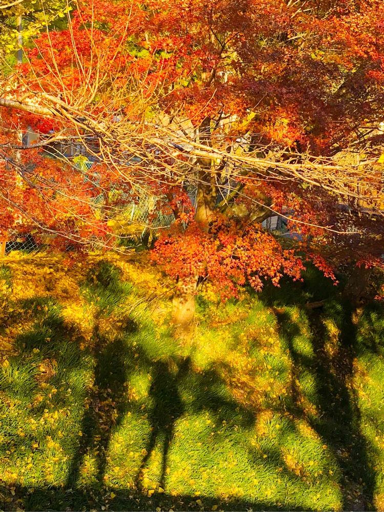 普通に紅葉の写真を撮っていましたがふと横に目をやると影ができてて影絵みたいで楽しかったのでパシャり😆
