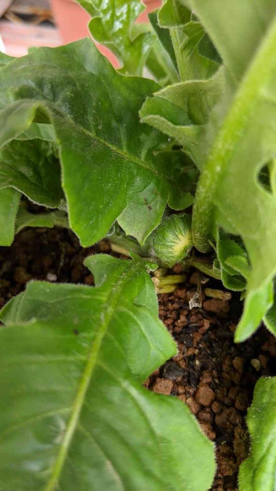 ガーベラの蕾が少しだけ見えています。このこはまだ咲くのは先ですね