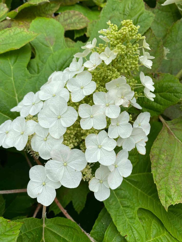 我が家にも昨年頂いたカシワバアジサイが根付きました✨いま、ぽつぽつ咲き始めました♪