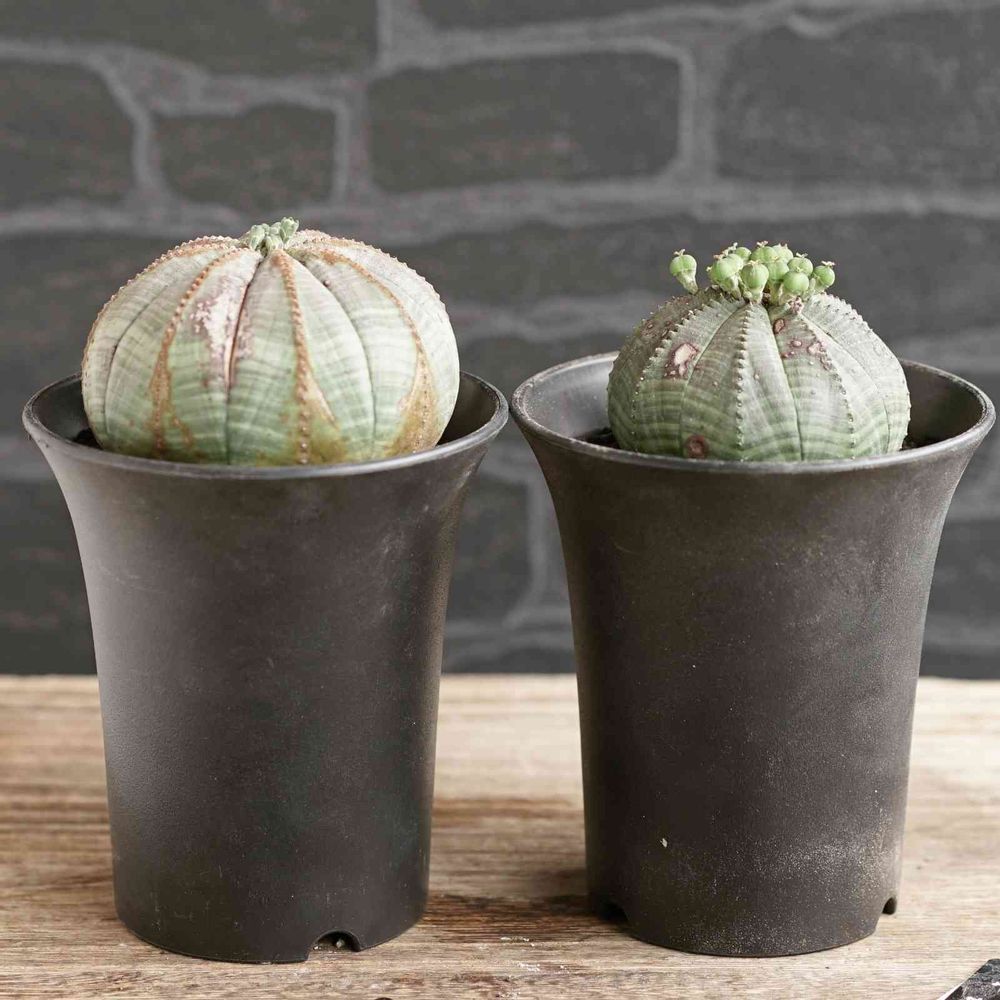 ディープグリーンから褐色のまんまるボディにトゲはなく、グリーンのストライプと赤いステッチでチェック柄を描く、工芸品の手鞠のようなかわいらしいコ。 https://pukubook.jp/detail/Euphorbia_obesa #ユーフォルビア #オベサ #ユーフォルビアオベサ #Euphorbia #Euphorbiaobesa #多肉 #多肉植物 #多肉図鑑 #succulents #pukubook