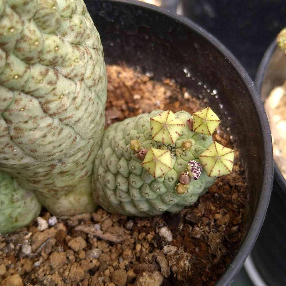 なかなか聞かない属名ですよね。花はガガイモ科っぽい珍妙な花を咲かせてくれます😄