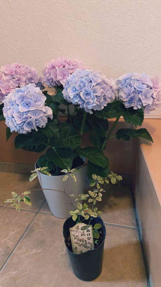 可愛い紫陽花💕1鉢で色が色々✨とあけび!珍しいのでついついお迎えしました〜🥰