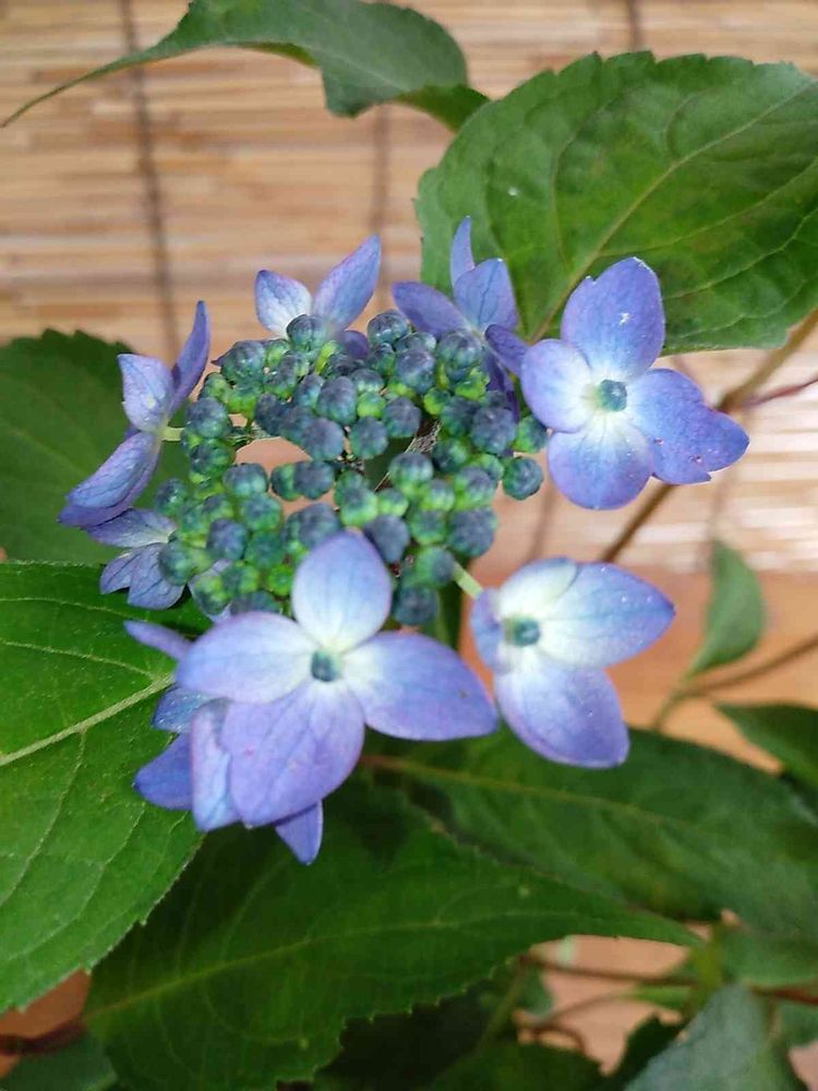 山アジサイの藍姫が咲きました。藍色が綺麗に出ています