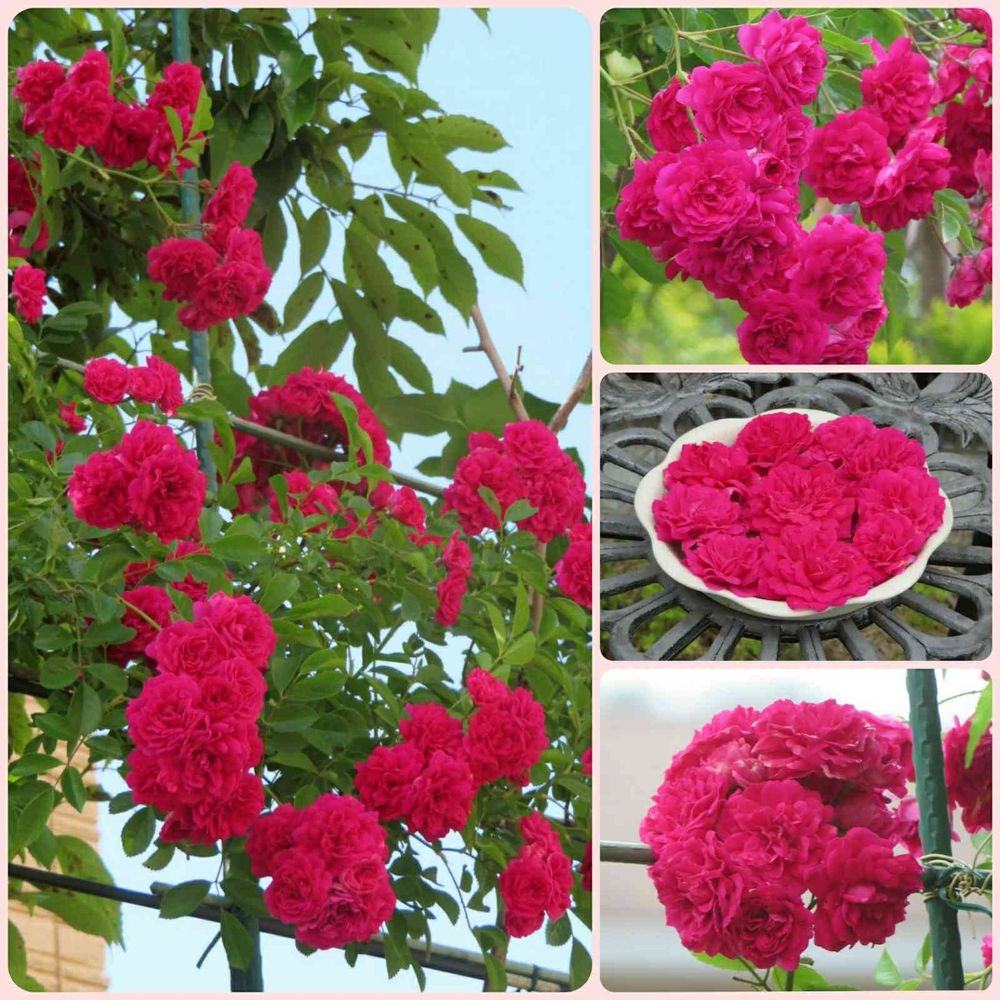 我が家のツルバラ、今年は例年になく沢山咲いてくれたので、鉢受皿に浮かべたり(右中)、束ねたり(右下)して遊んでみました。