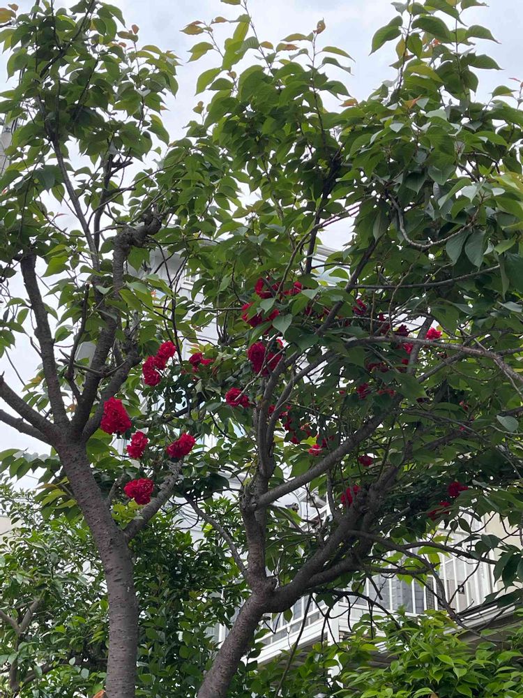 実は、桜の木に絡んだ赤い薔薇🌹