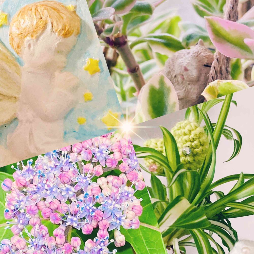 とっても素敵なお色の紫陽花と粘土のかわいいエンジェルちゃんでエンジェル祭りにご参加ありがとうございま〜す