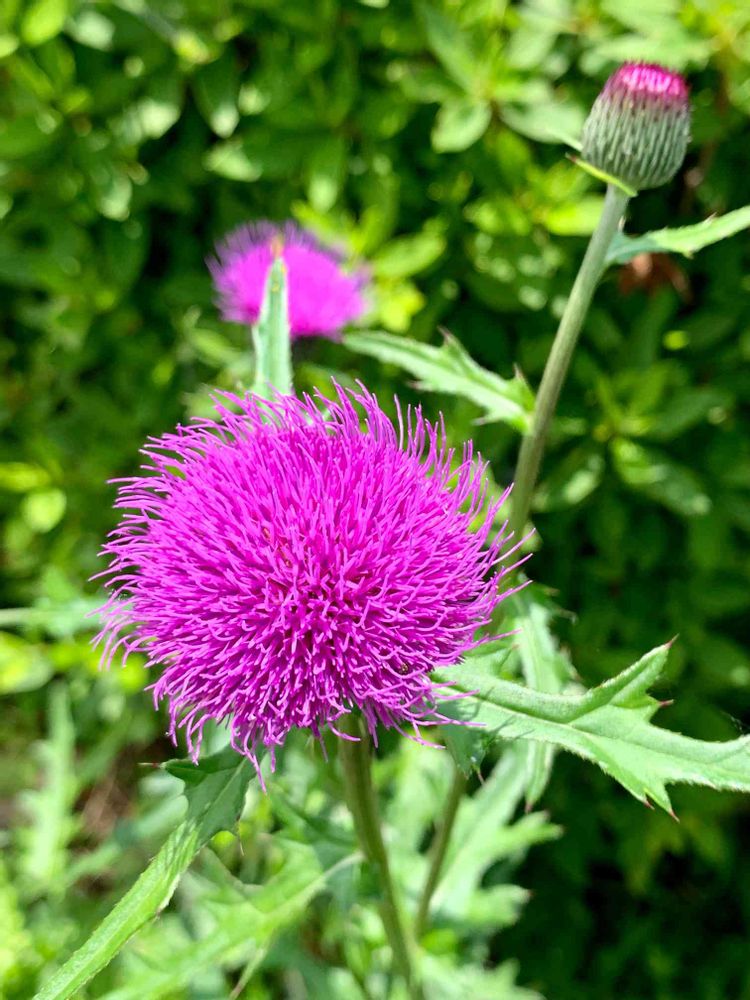 うちに、トゲトゲトゲトゲの、オニアザミらしき草が生えてきました。花を見るまでと、置いていますが、近くを通る度に、刺されます。水やりとかね。