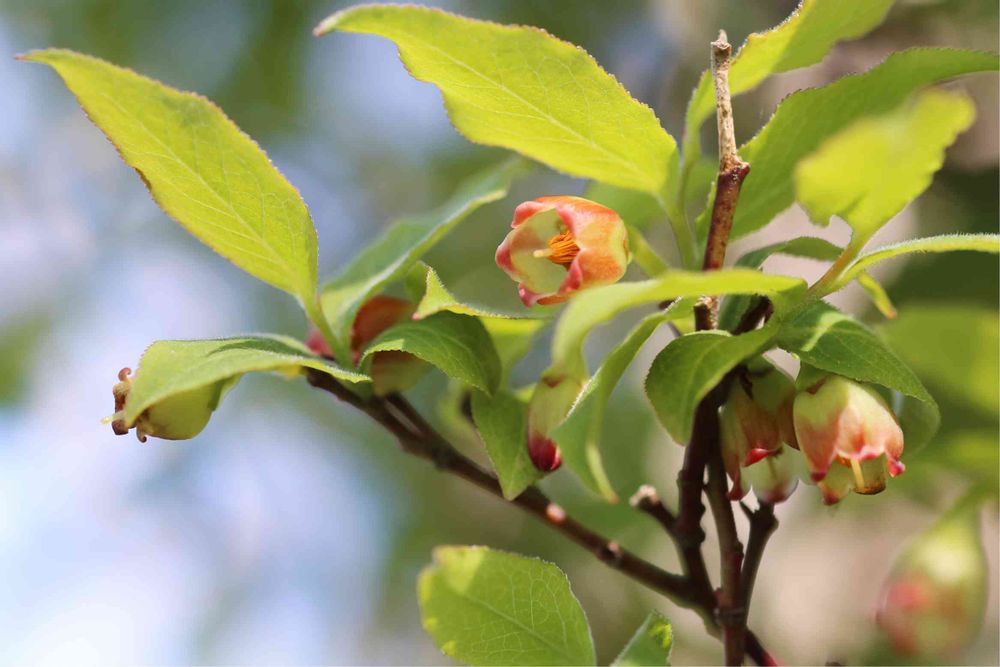 赤みを帯びた壺状の花を咲かせます。ブルーベリーの仲間で、赤い実は食べることができます☺️