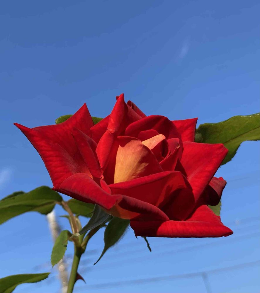 小さな庭,我が家のバラ,青空の下の投稿画像