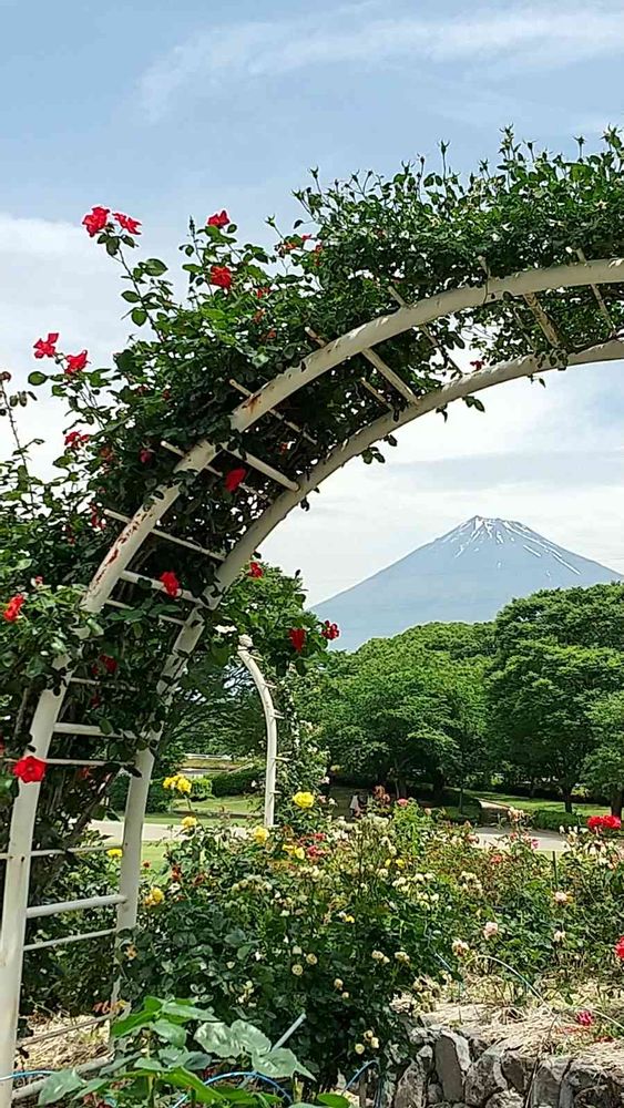 薔薇のアーチの中の富士山🗻とても⤴️⤴️素敵ですね✨👍