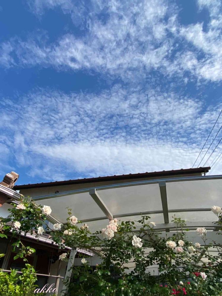 つるバラ ニュードーン 空の雲に負けるな‼️