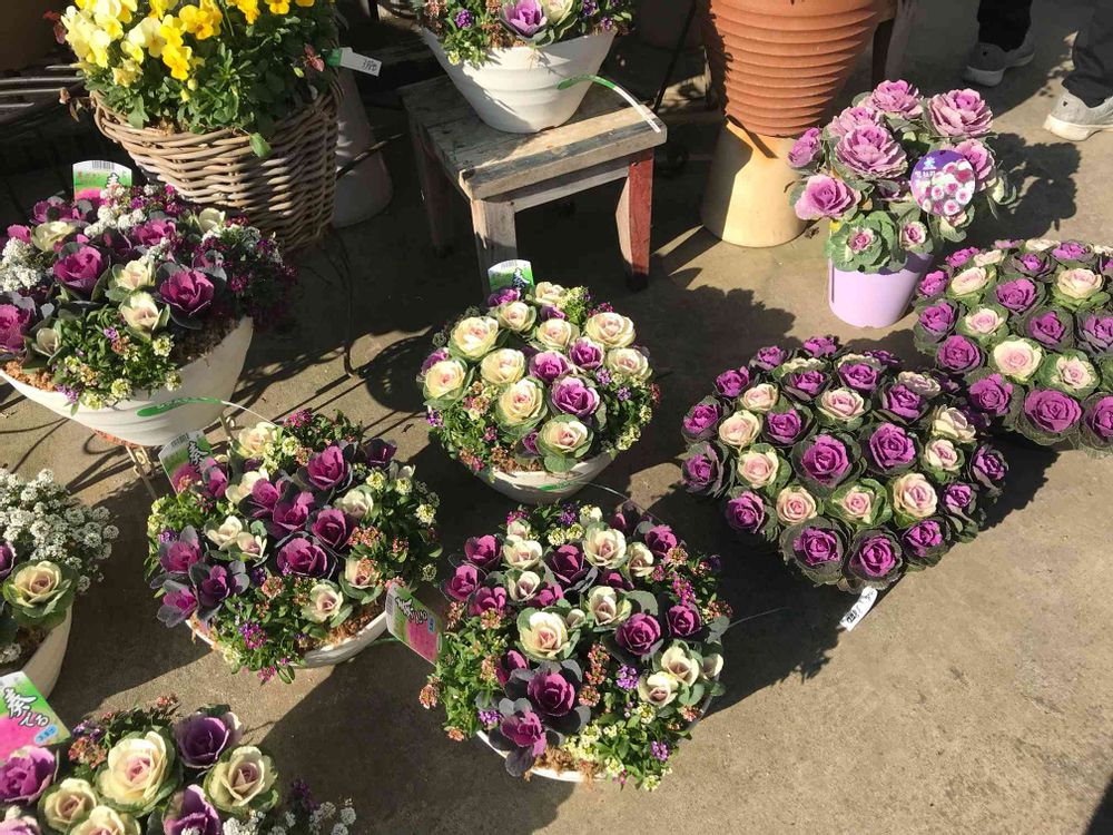 葉牡丹だけで寄せ植えしてると、多肉植物みたいですね🎵
